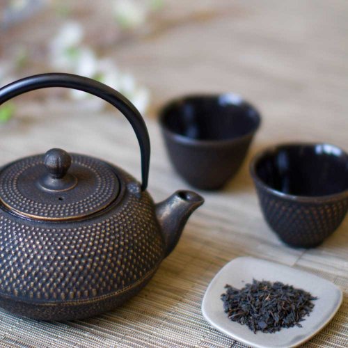 This graceful elegant teapot crafted of cast iron will simply perfect your afternoon tea time with friends and loved ones Its high quality cast ironware heats evenly and retains heat well to make the perfectly blended tea Its black enamel interior coating helps to prevent rust and includes a stai