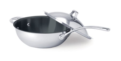 This pan offers a high volume capacity yet is a managable compact size Its sloped sides and arched high dome lid provide practicality and charm The rounded sides allow for easy stirring Excellent for stir-frying when a wok is just too big for the job Coated with Excalibur non-stick specially