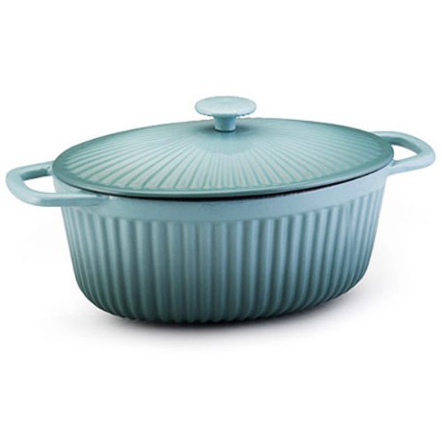 Paula Deen Cast Iron 5-quart Covered Oval Casserole, Aqua 51515