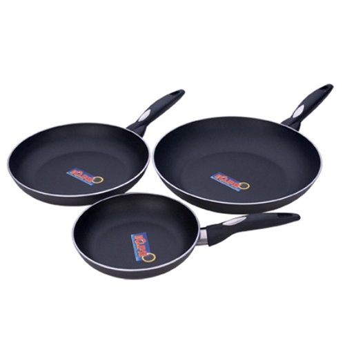 The true workhorses in any kitchen are the frypans From MIU FRANCE this 3 piece non-stick aluminum fry pan set contains three different sizes There is an 8 inch diameter10 inch diameter and 12 inch diameter size All sizes feature the Eclipsenonstick and abrasion resistant surface coating
